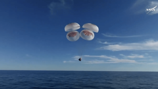 美國航天局的直播畫面顯示,“龍”飛船于美國東部時間18日1時05分(北京時間18日下午1時05分)脫離國際太空站,啟程返回地球。最終,載著太空人的太空艙在計劃原定的當天下午5時57分(北京時間19日5時57分)左右在佛羅里達州附近海域順利濺落。