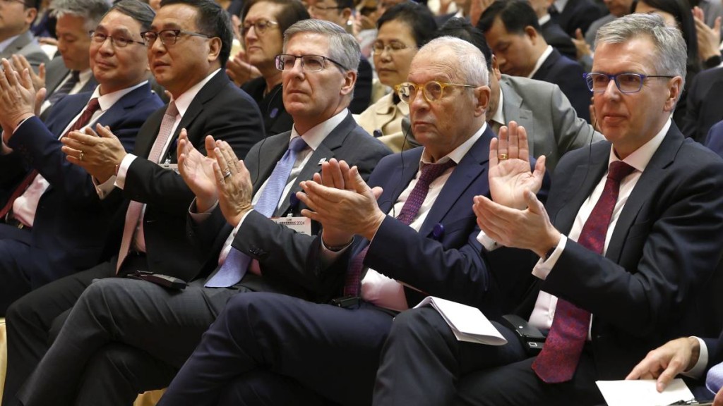 ▲今年的中國發展高層論壇年會,預料參加的歐洲企業的比例會增加。圖為該論壇去年開會情況。中新社