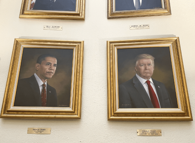 ▲奧巴馬與特朗普的畫像在議會大樓內并列懸掛。美聯社