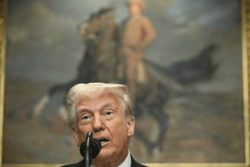▲美國總統特朗普近日在旗下社交平臺Truth Social發文,要求科羅拉多州議會移除其懸掛的官方畫像,批評該畫作“故意扭曲”其形象。法新社