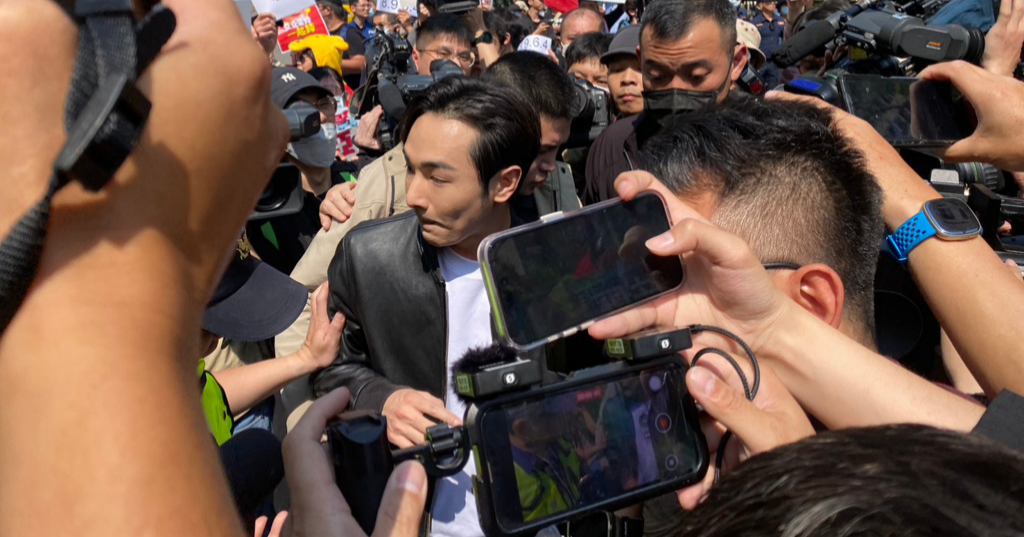 現場兩派人馬爆沖突,網紅八炯也到場開嗆。(中時新聞網)