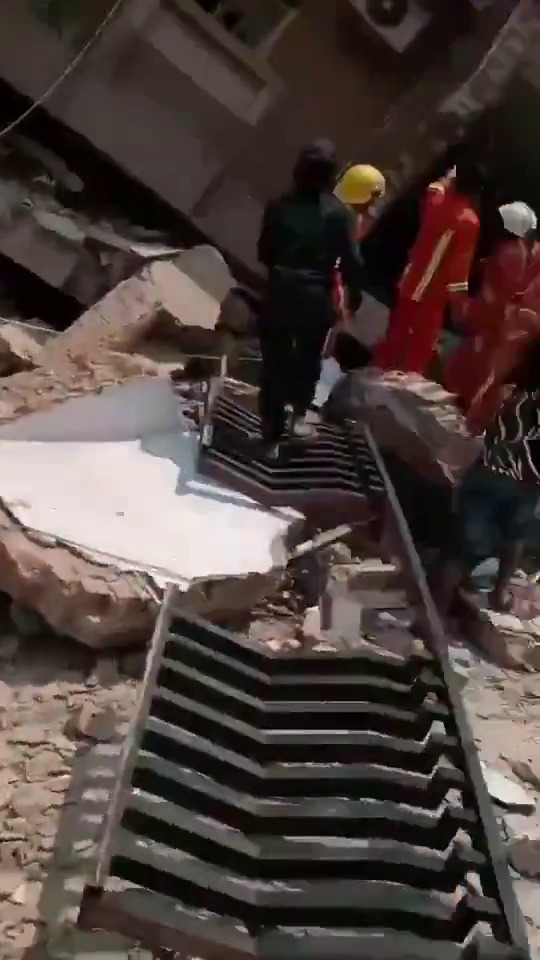 救援人員努力從瓦礫救人。 WhatsHappeningInMyanmar@X