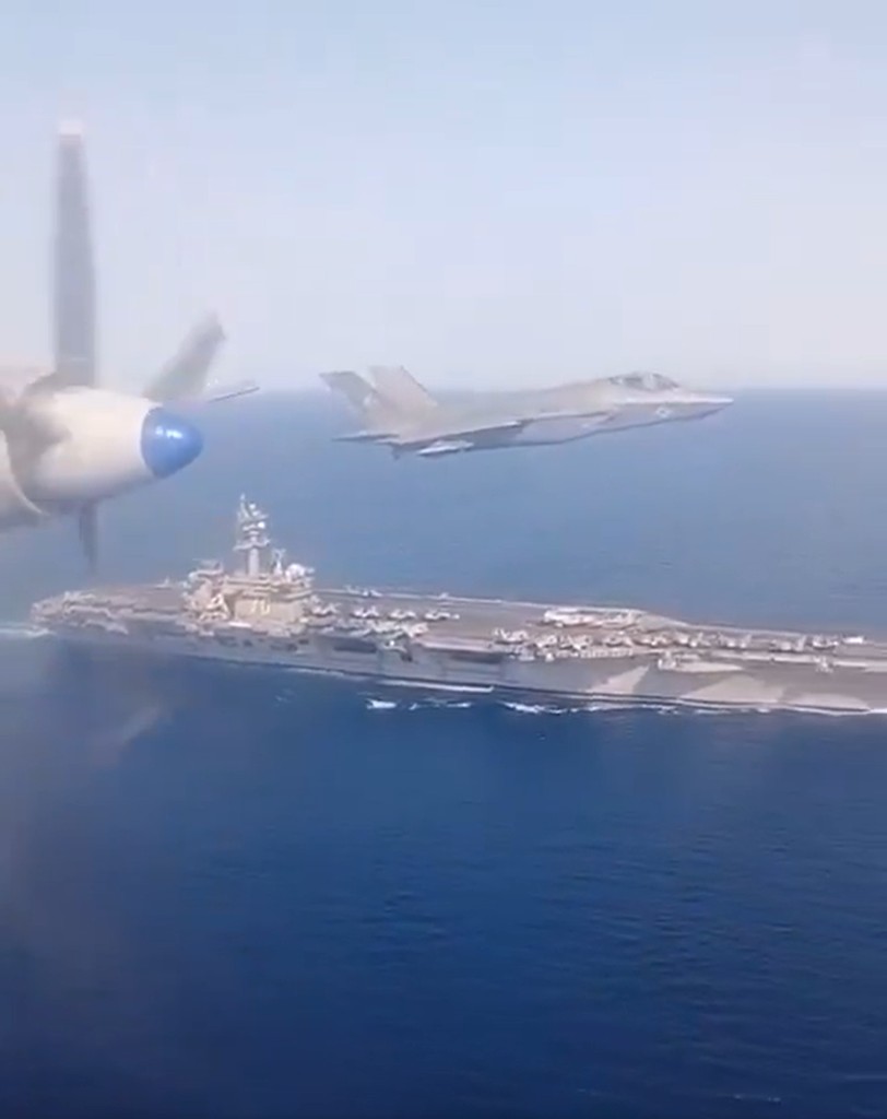 ▲俄方視覺俄美軍機并肩飛行,卡爾文森號在下方出現。 X / Archer83Able