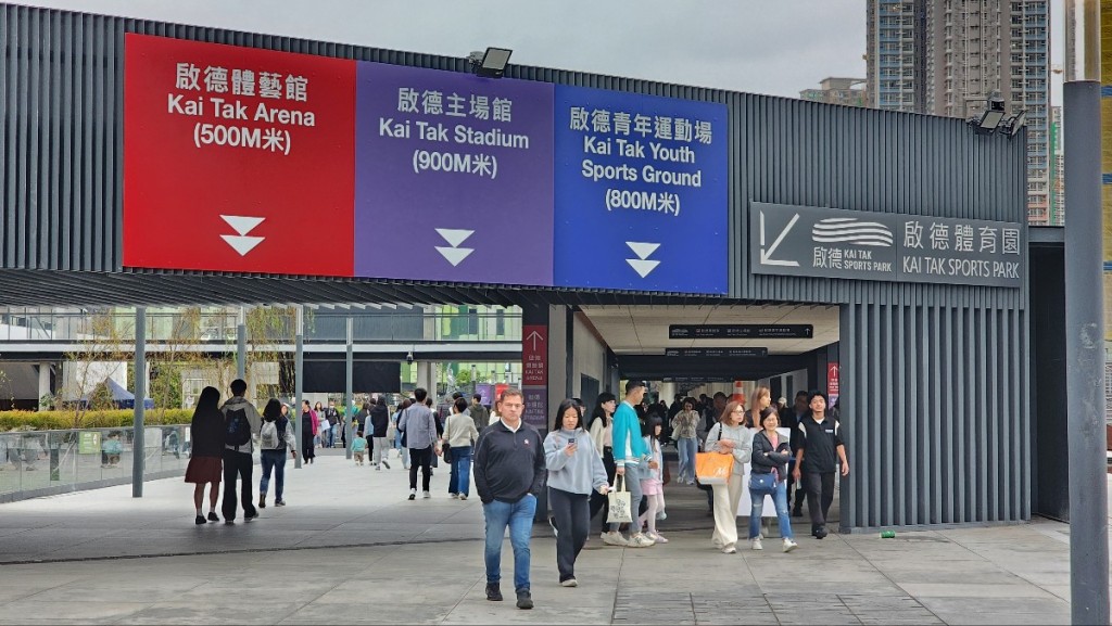 現場所見,球迷們魚貫通過啟德站和宋皇臺站前往主場館,港鐵派遣多名職員在場協助乘客,同時亦有急救人員候命,以備不時之需。至于毗鄰的Airside商場及啟德零售館商場人流平穩,多間店舖都擺放了特別陳列品,吸引顧客駐足。