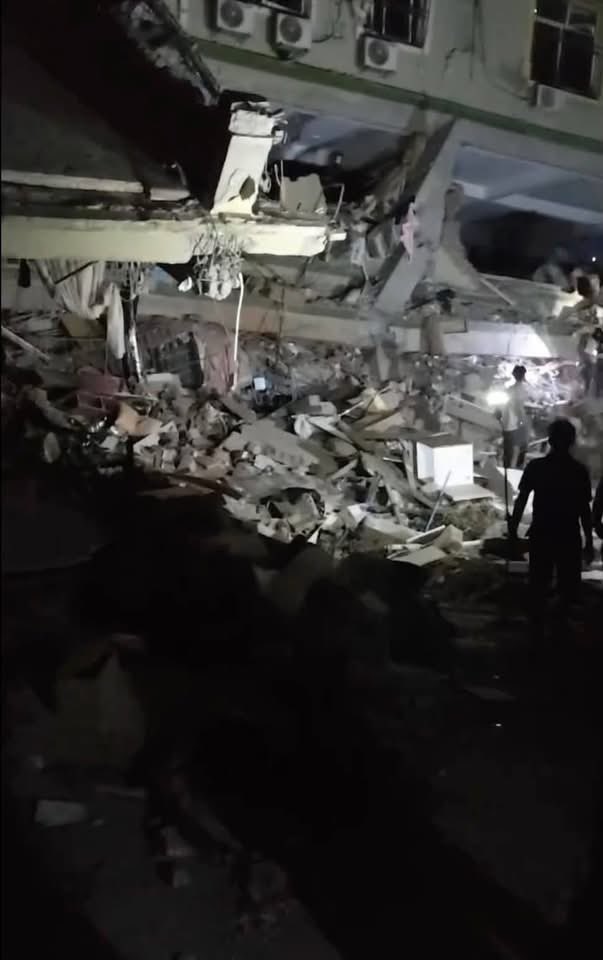 曼德勒住宅Sky Villa倒塌,大量居民被瓦礫掩埋。X@Myanmar38187592