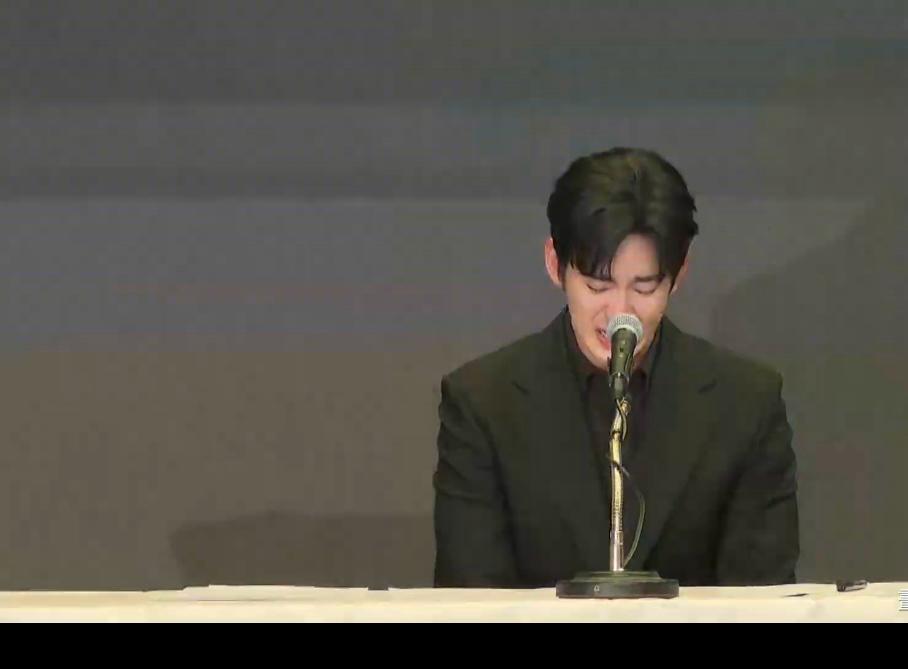 金秀賢今日下午穿全黑西裝現身記者會。.jpeg