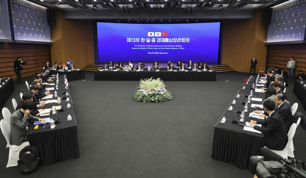 ▲第13次中日韓經貿部長會議3月30日在韓國首爾舉行。 美聯社