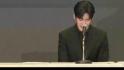 ▲金秀賢昨日下午穿全黑西裝現身記者會。