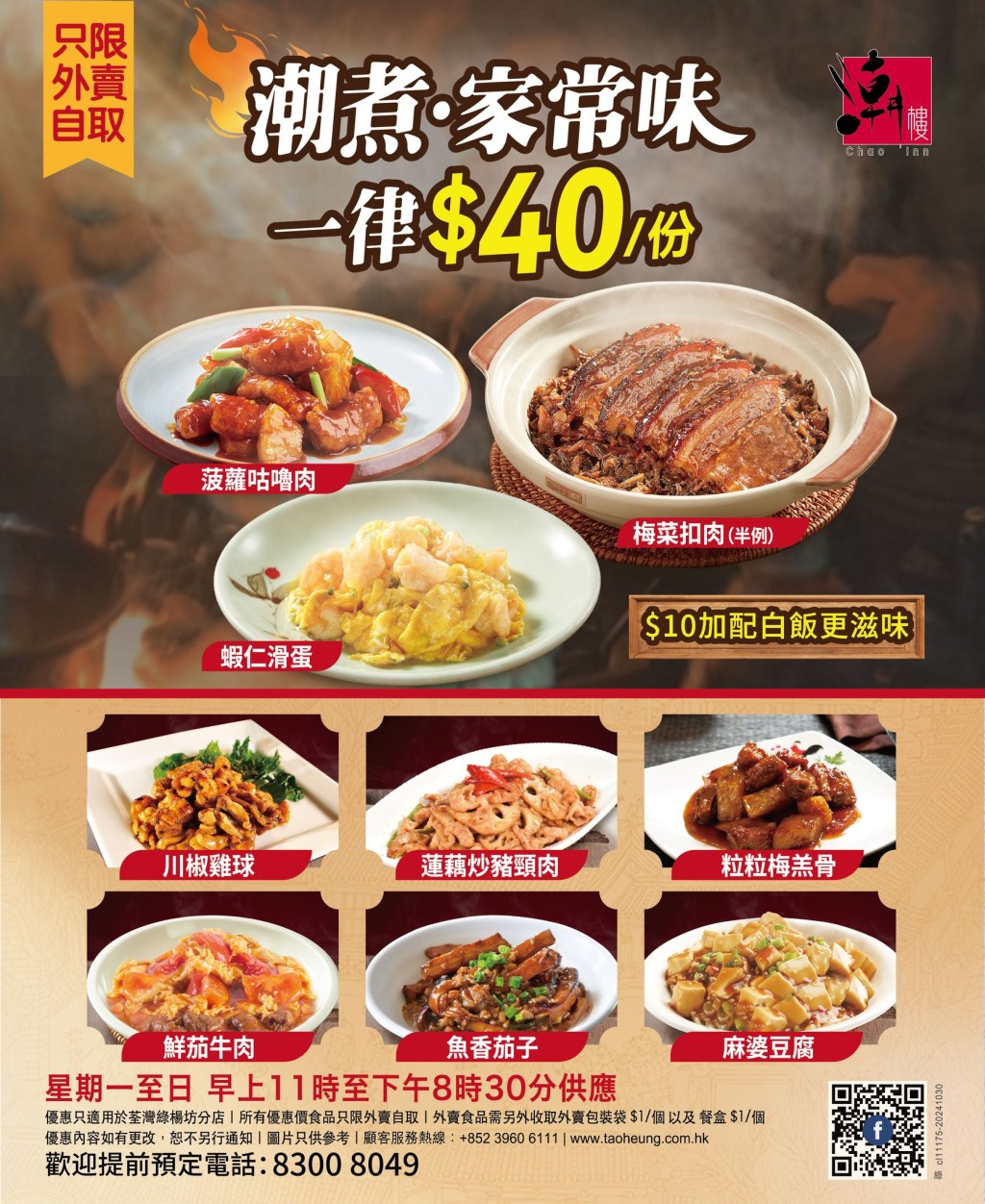 ▲連鎖潮州菜外賣小菜優惠!$40梅菜扣肉/川椒雞球/粒粒梅煎骨 星期一至日午晚市8款任揀