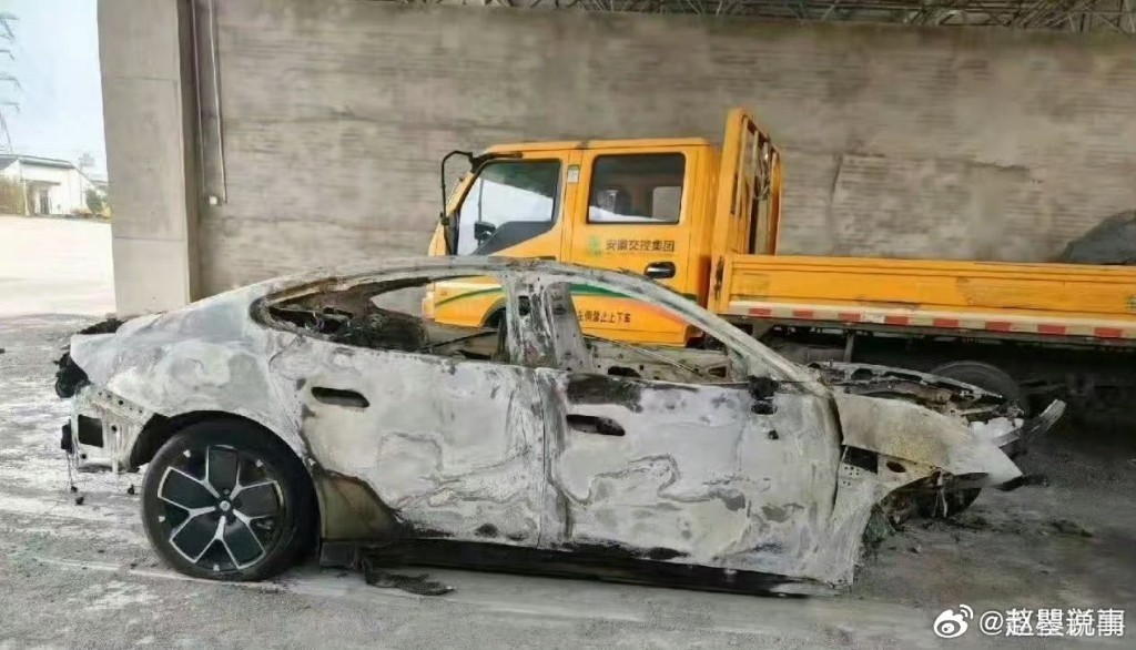 肇事的小米SU7被燒成廢鐵。