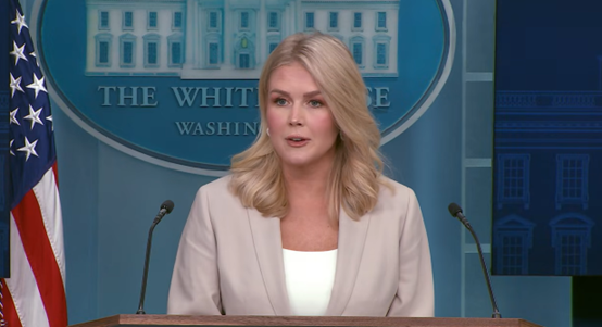 ▲萊維特當地時間4月1日在記者會上的畫面 圖源:白宮社交媒體賬號所發布視頻中畫面截圖
