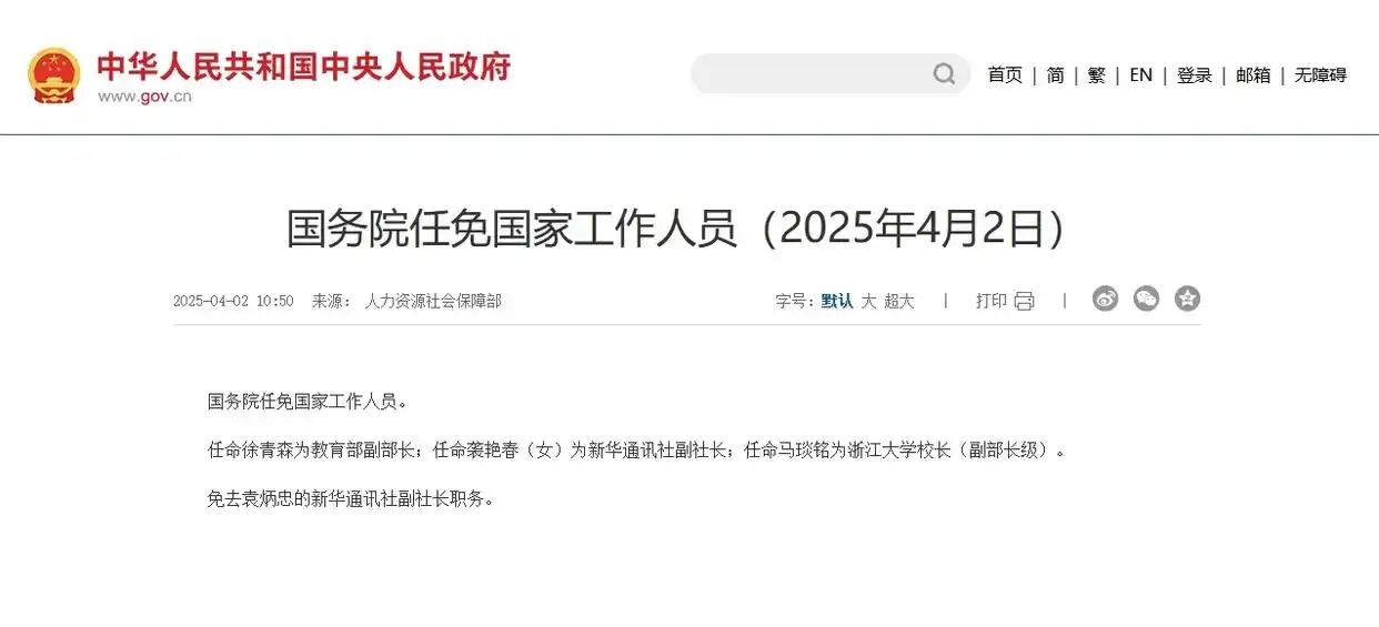 首頁>內地>要聞 徐青森任教育部副部長,襲艷春任新華通訊社副社長 發布時間:2025-04-02 11:18 據人力資源社會保障部消息,國務院任免國家工作人員。任命徐青森為教育部副部長;任命襲艷春(女)為新華通訊社副社長;任命馬琰銘為浙江大學校長(副部長級)。免去袁炳忠的新華通訊社副社長職務。▲襲艷春 資料圖來源:新京報 相關閱讀 以總理稱法院無權干預政府解職辛貝特局長 要聞2025-03-25 國務院任免國家工作人員:李曉龍任住建部副部長 要聞2025-03-19 熱門文章 軍演繼續︱解放軍臺海演習第二天擴至中部及南部,首次模擬精確打擊港口、能源設施 特朗普4月2日關稅將“立刻”生效,白宮:華爾街會沒事 王毅晤普京,稱習近平下月訪俄籌備順利 國務院任命周一鳴出任香港警務處處長 臺天然氣LNG船遇軍演不敢進?臺網查航線圖炸鍋了 會去投票罷免藍、綠“立委”嗎?最新民調曝驚人變化 馬斯克害特斯拉嚴重失寵!2大難關拖累,歐洲3月銷量再跌 國民黨打護韓牌有用?黃暐瀚曝綠營“二階罷免卡關”最新進度 緬甸地震 | 泰研究團隊拍下驚人一幕,海底魚群集體“躺平” 冰壺女神姜嘉怡魔鬼身材高顏值,網民驚呼:“這腰臀比是真實存在的嗎?” 專題 更多 > 中芯國際上半年營收預計超22億美元,四季度將試產7nm工藝 太興盈喜料多賺逾3倍,指將堅守審慎理財政策 中國移動半年多賺5%,中期息增近6% 清華女學霸創業、一年一融資,鎂佳股份估值9.3億美元沖刺港交所 應收賬款走高,豐沃股份三成收入打“白條” 惠科股份IPO:獲政府補助超53億,向實控人堂弟采購超8億 關稅戰|白宮:特朗普簽行政命令,對華關稅暫緩期再延長90日 高盛:64%關稅成本由美企“買單”,消費者僅承擔22% 美媒:特朗普政府通過關稅施壓,要求買美國軍火