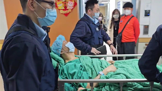 ▲柯文哲在矯正署人員戒護下,推出恢復室,返回病房。(民眾提供)