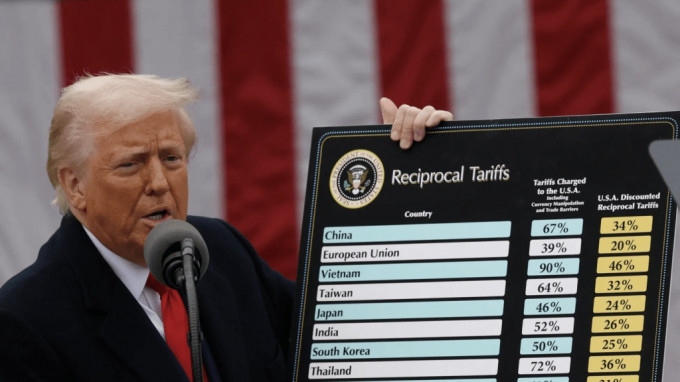 美國總統特朗普在當地2日下午4時(北京時間3日凌晨4時)公布全球矚目的對等關稅措施,將對40多個貿易逆差較的對不同國家征收不同稅率,由10%至49%進口貨品關稅不等,其余全球所有國家也一律征收10%關稅,4月9日生效。從他即場展示的圖表,美國將對中國征收34%的關稅,歐盟20%,其中對越南“最重手”,征收高達46%的關稅。