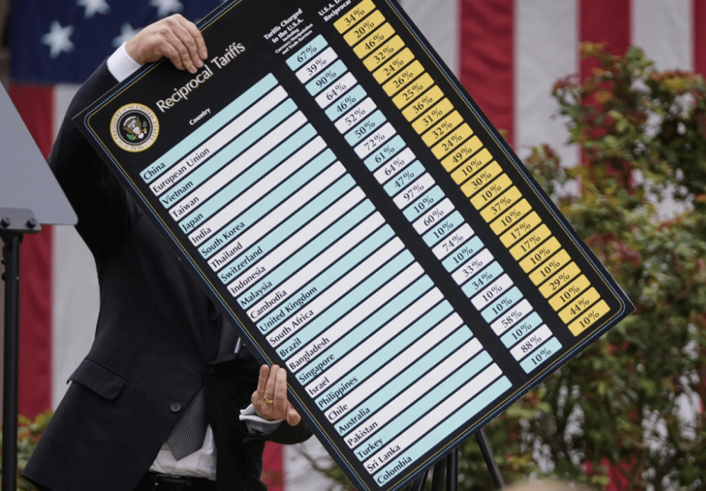 ▲特朗普即場舉著一張題為“互惠關稅”的圖表。美聯社