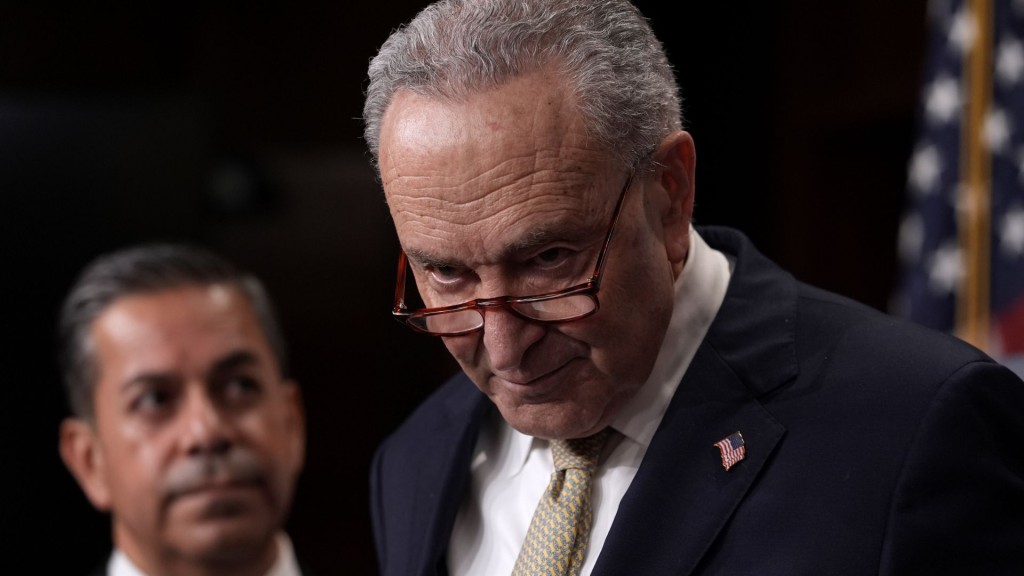 ▲美國民主黨領袖舒默(Chuck Schumer)推動立法,盼表決修正案取消部分特朗普關稅。 美聯社