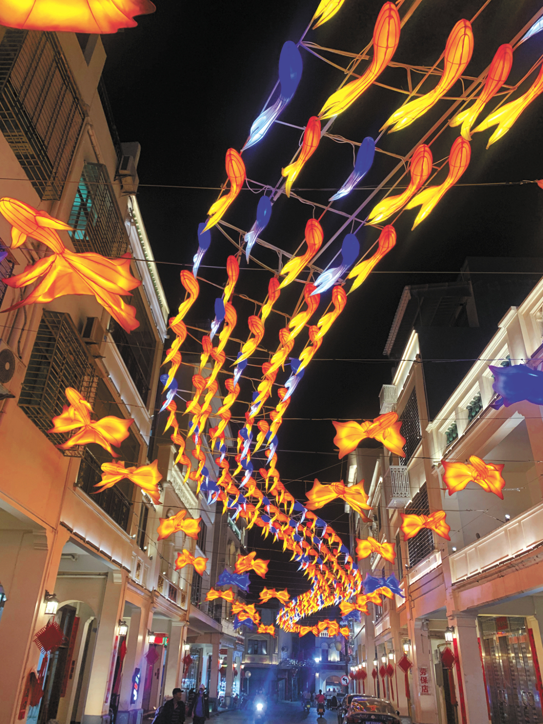 傍晚八時,記者一行走進雷州市曲街歷史文化街區,古騎樓、古橋、古牌坊等歷史遺跡仿佛將人們帶回了“舊時光”。暮色漸濃,曲街燈明,數百米長的老街頓時流光溢彩?!巴?!太美了?!庇慰汀斑青?、咔嚓”拍照聲此起彼伏。