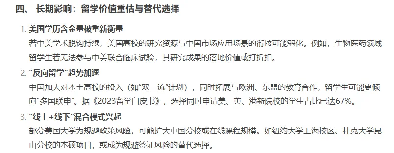 短短一周,中美貿易摩擦迅速升級,這場關稅戰的硝煙味愈發濃烈。在這場激烈的關稅博弈中,赴美留學生又將面臨怎樣的挑戰呢?小編找來Deepseek為留學生們分析一波。