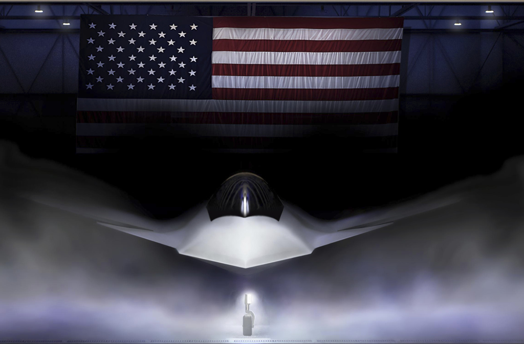 美國總統川普3月21日公開的F-47「下世代空優」(NGAD)第6代戰機圖像。