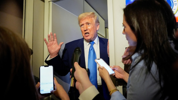 ▲特朗普在“空軍一號”上發表講話。路透社