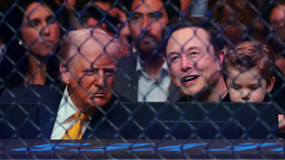 ▲特朗普(左)與馬斯克觀看MMA比賽。路透社