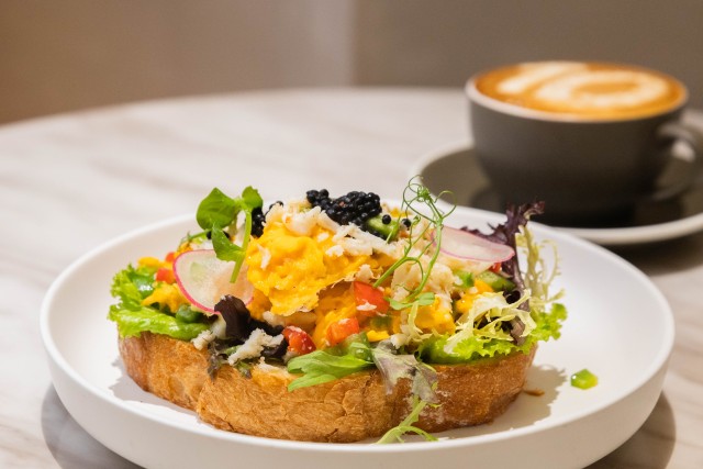 香辣面包蟹肉炒滑蛋是配搭富創意的西餐,把嫩滑的辣椒炒蛋,伴啖啖肉的面包蟹和三文魚子,吃時加上新鮮即蒸的饅頭及蟹黃荷蘭醬,中西合璧。 時令蟹黃墨汁寬面是香濃西餐之選,用墨魚汁闊條面拌以大閘蟹膏及海膽牛油等,豐腴鮮美。
