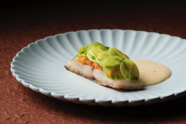 加入了煙魚骨慕絲、佛手柑和三文魚子,為魚肉增加清爽與口感,是很適合夏天品嘗的西餐前菜。 炭燒和牛則選用澳洲M9級的牛腰脊肉,另伴上炸牛蒡、白蘿卜和鰹魚高湯烹調,肉質粉嫩及油脂鮮香。
