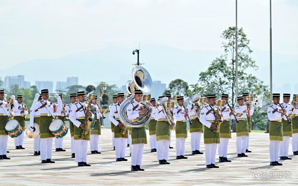習近平乘車抵達時,易卜拉欣和馬來西亞總理安瓦爾在下車處熱情迎接。兩國元首登上檢閱臺,軍樂團奏中馬兩國國歌,鳴禮炮21響。習近平檢閱儀仗隊。兩國元首進入國家王宮大廳,同雙方陪同人員握手致意。