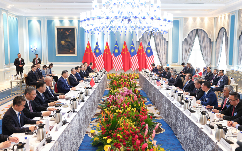 習近平指出,馬方將今年東盟的主題定為“包容性和可持續性”,體現了對時局的深刻洞察。中方支持馬來西亞發揮東盟輪值主席國作用,愿同地區國家一道,盡早簽署中國-東盟自由貿易區升級議定書,以開放包容、團結合作抵制“脫鉤斷鏈”、“小院高墻”和濫征關稅,以和平、合作、開放、包容的亞洲價值觀回應弱肉強食的叢林法則,以亞洲的穩定性和確定性應對世界的不穩定和不確定。