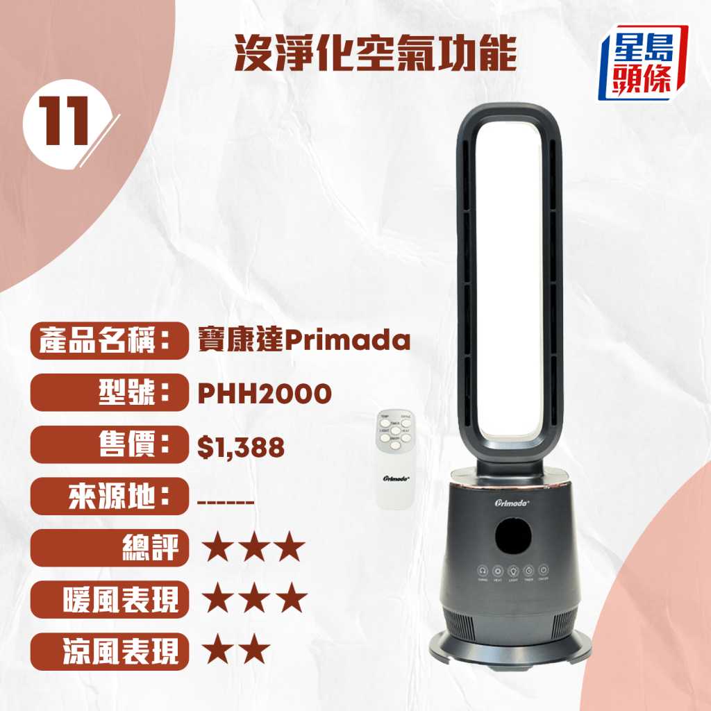 11.寶康達 Primada / PHH2000 / $1,388 / 3星