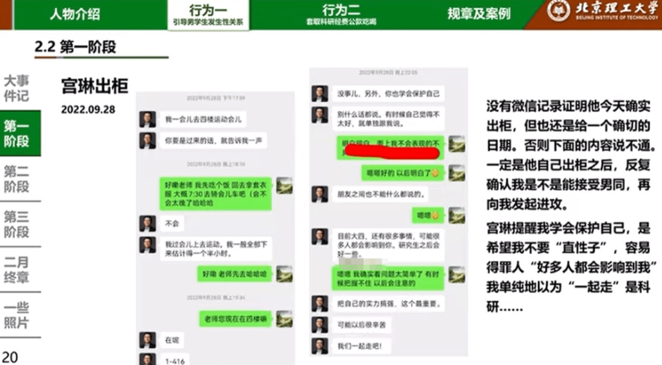 昨日(4月19日),北京理工大學機車學院2023級在讀研究生常旭強在內地視頻網站“bilibili”實名舉報北京理工大學機車學院常務副院長、北京理工資產有限公司總經理、教授、博導—宮琳(男),在2022年11月至2024年1月,對其騷擾猥褻并與其發生性關系,致使其患上中度抑郁和輕度焦慮。