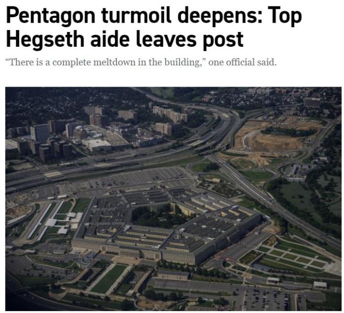 報道指出,人事變動使得防長赫格塞思失去了三名重要的高級顧問。