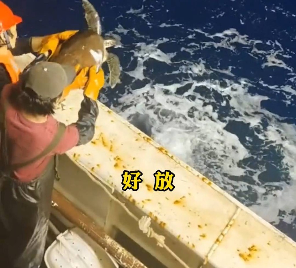 另一段影片是小星父親3月2日凌晨在漁船上放生海龜的影片。父親在片中展示并播報所處經緯度和時間后,兩名船員從甲板上將海龜拋入海洋中。除了相關規定禁止非法捕撈海龜,漁民習俗亦認為放生海龜能帶來出海平安的福祉。