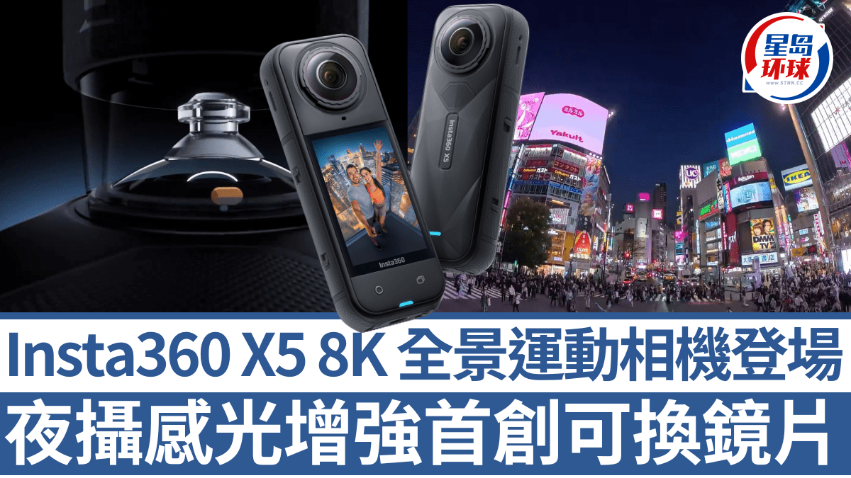 Insta360推出新一代8K全景運動相機X5,除了雙感光元件升級至1/1.28吋(英寸),配合三重AI芯片,換上夜景攝錄8K全景片仍然清晰明亮,且支持全新5.7K 60fps運動HDR,同時首創InstaFrame模式同步拍攝平面與360o全景,加上可自行更換鏡頭保護鏡片及續航力延長,相信能吸引現有X3、X4用家換機升級!