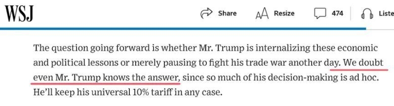 這篇社評中的核心觀點其實很直白,認為自4月初宣布對全世界加征“對等關稅”,并對中國進行極限施壓以來,白宮在過去的這20多天一直在不斷做出調整:先是給除中國以外的其他一些國家寬限90天,然后是給蘋果、英偉達等大企業開后門,再到如今準備大幅減輕對中國的關稅。