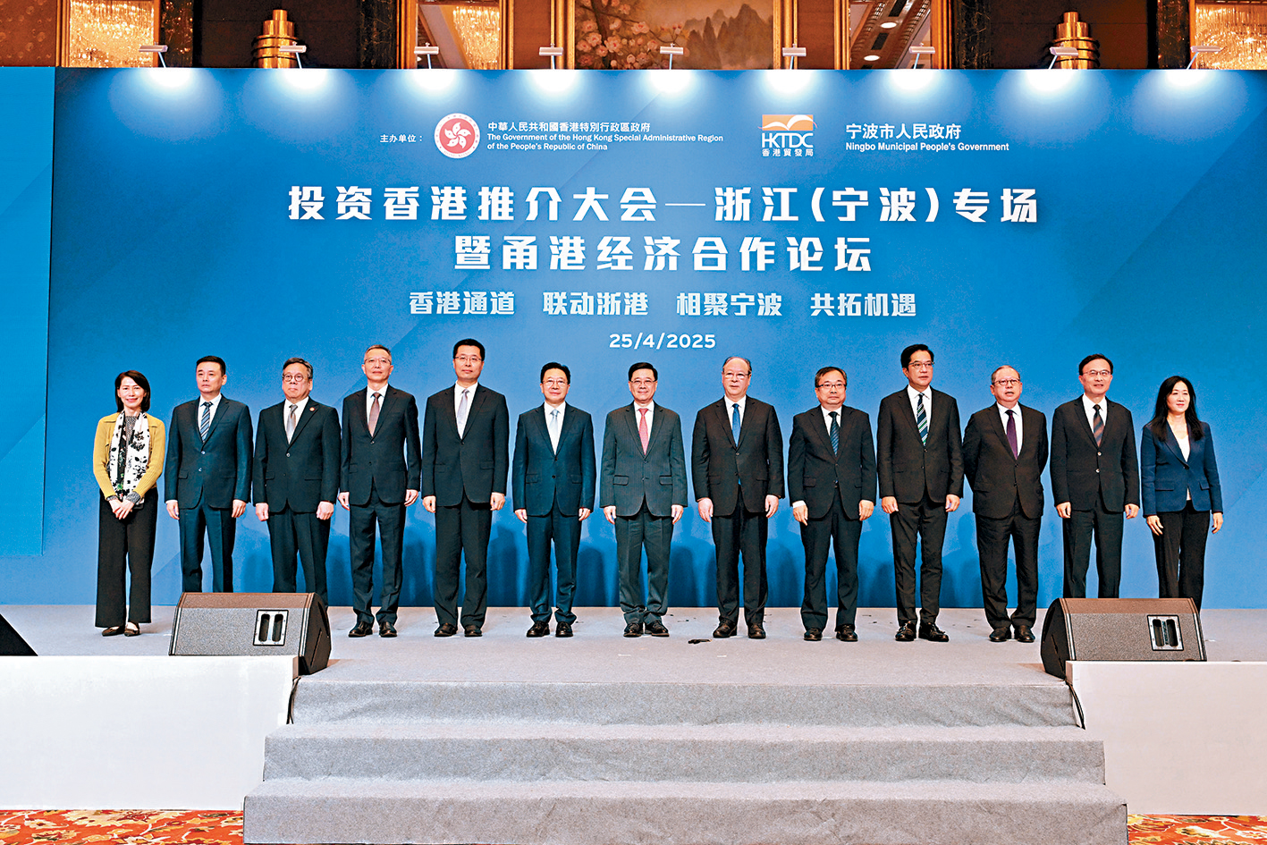 香港行政長官李家超訪問浙江4天行程圓滿結束。在昨日投資香港推介大會—浙江(寧波)專場暨甬港經濟合作論壇上,李家超向內地企業推廣香港的獨特優勢和引進來、走出去的雙向平臺角色,促進投資和合作。他指,美國濫施關稅為環球經濟帶來不少挑戰和不明朗因素,香港可助力內地企業重新部署供應鏈,并帶領企業開拓新興市場,突破美國封鎖。會上,12間浙江知名企業涉金融服務、貿易、創新科技、航空、物流、零售等不同領域,與香港投資推廣署簽約,將來港開設業務。
