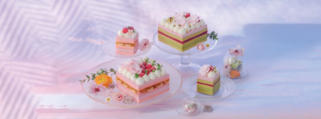 其中,櫻桃開心果撻以開心果做成撻底,面層用上帶酸的莫利洛櫻桃做成的慕絲,配香軟的開心果瑪斯卡邦奶酪;花束造型蛋糕精致,以芒果慕絲、生鮮水果、海綿蛋糕等制成。此外,系列還有覆盆子芝士蛋糕、玫瑰花瓣士多啤梨蛋糕、生酮雜莓忌廉蛋糕等。