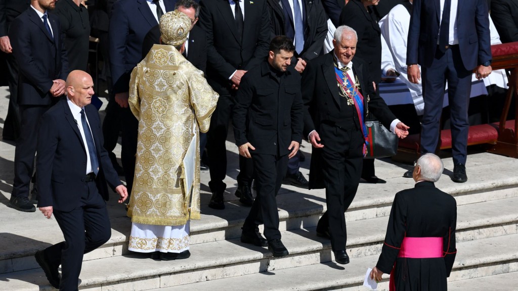 烏克蘭總統澤連斯基出席教宗方濟各喪禮。(法新社)