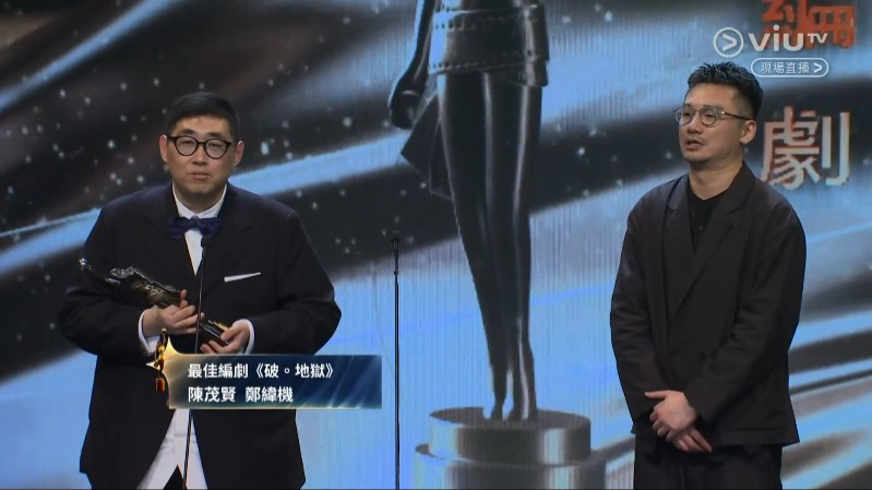 22:07 陳法拉與張家輝頒發最佳編劇,由《破·地獄》的陳茂賢、鄭緯機奪得。