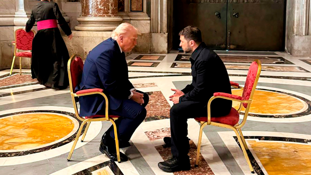 美國總統特朗普26日在梵蒂岡參加教宗方濟各(Pope Francis)喪禮期間,與烏克蘭總統澤連斯基進行短暫交談,他昨(27)日稱,他“認為”澤連斯基已準備好放棄克里米亞。特朗普也罕見澤連斯基變得“更加冷靜”、想達成協議。