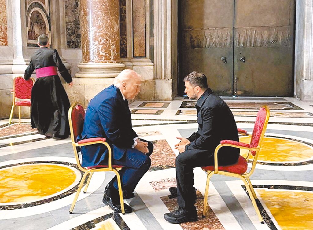 特朗普許多談判目標尚未實現,俄烏戰爭仍在持續,且特朗普已多次揚言撤手不管。圖為特朗普與澤連斯基4月26日在梵蒂岡會談。