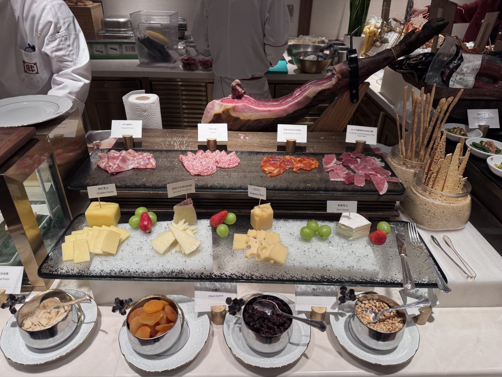 漢普閣的早餐亦不失色,同樣會有即點即煮環節,包括有蝦餃皇、紅燒鮑魚燒賣、羊肚菌水晶餃3款點心、燉湯、魚子醬龍蝦雪蟹窩夫及新鮮莓果窩夫等,單點這幾款已值回票價。而晚市供應的刺身、水蟹粥、燒味等亦有得留低,加上有“手推車”魚子醬薯片放題,“食魚子醬做早餐”已不再是夢!而且早餐時段由早上7時至下午1時,最適合喜歡賴床的住客。餐廳亦照顧到不喜歡吃自助餐的食客,會于另一層提供西式及中式套餐,滿足不同需要。