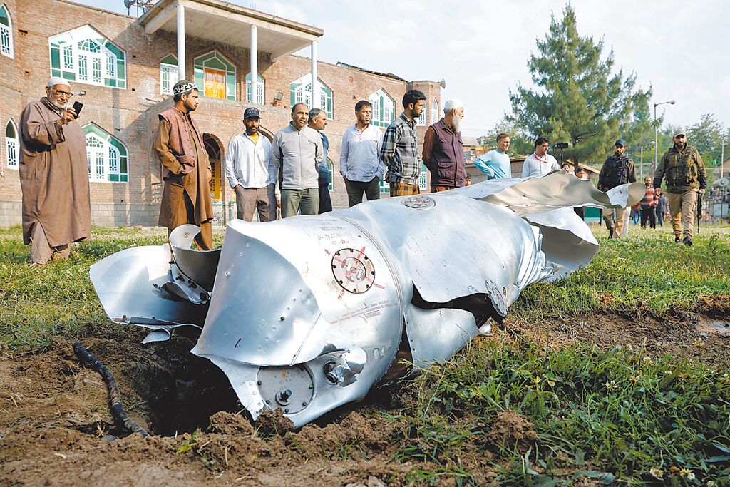 ▲印巴沖突交火,印控克什米爾地區出現疑似為飛機殘骸的金屬碎片。(路透)