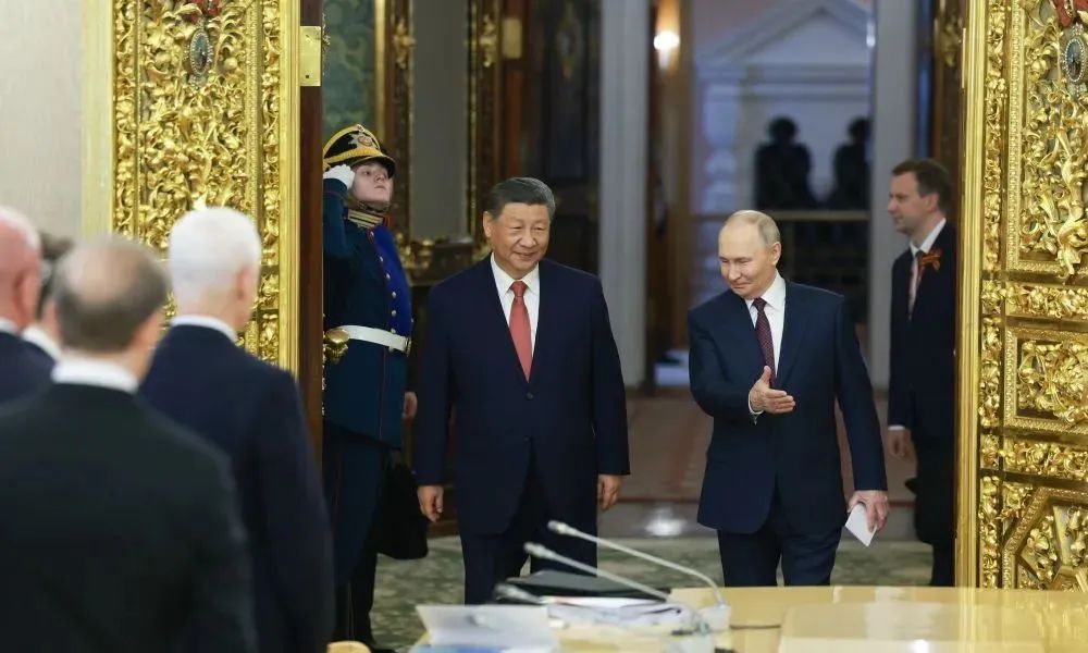 習近平強調,俄羅斯是我作為中華人民共和國主席到訪最多的國家,這已經是第十一次來到俄羅斯。明天,我將出席紀念蘇聯偉大衛國戰爭勝利80周年慶典,這也將是我時隔10年再次出席這一盛大紀念活動。過去10年,是國際形勢大動蕩大變革的10年,也是中俄關系大發展大跨越的10年。我們共同見證了中俄兩國政治互信不斷鞏固和深化,見證了兩國各領域合作“芝麻開花節節高”。面對世界之變、時代之變、歷史之變,中俄兩國要牢牢把握雙邊關系前進方向和人類社會發展大勢,挺膺擔當,全面協作,為促進兩國發展振興、維護國際公平正義作出新的更大貢獻。