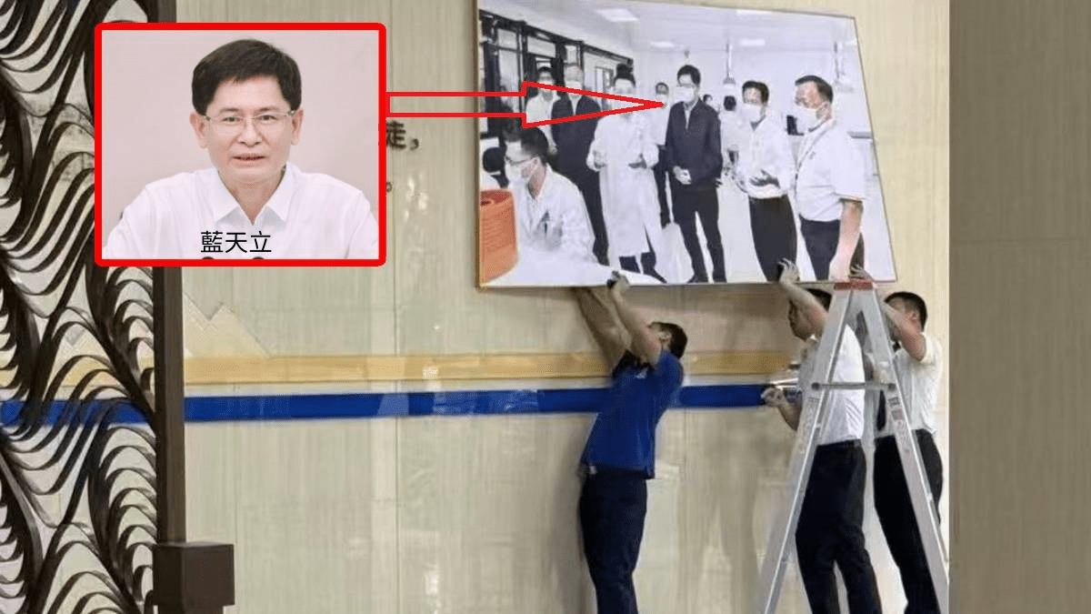 廣西自治區官網領導欄目已經刪去藍天立資料。 網傳圖片顯示,疑似廣西政府人員拆走辦公樓墻上藍天立的照片。藍天立的照片和言辭曾被制成展板宣傳,如今被丟棄在垃圾堆里。