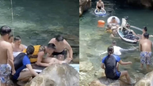 劉姓驢友溯溪期間,疑因潛水遇溺。網上流傳的影像顯示,多名男子在對昏迷的劉姓驢友急救,但仍然返魂乏術。
