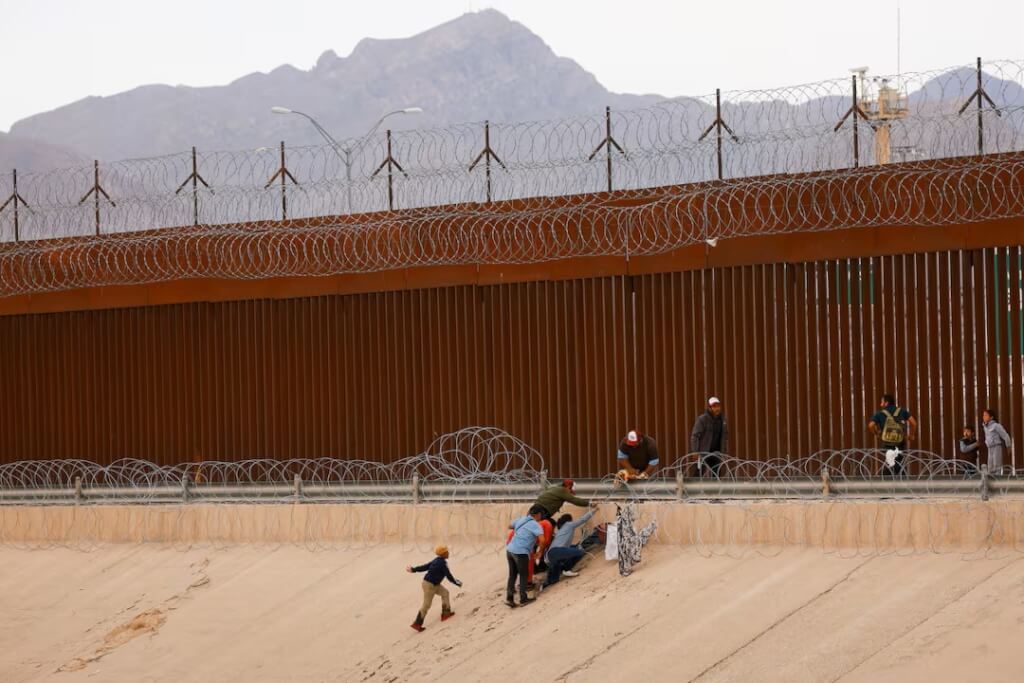 ▲美墨邊境去年6月有移民試圖穿越鐵絲網前往美國。(路透社)