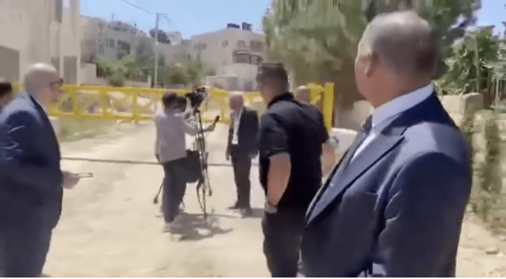 ▲歐盟及中國外交官等在約旦河西岸向遭以軍嗚槍示警。X片段截圖