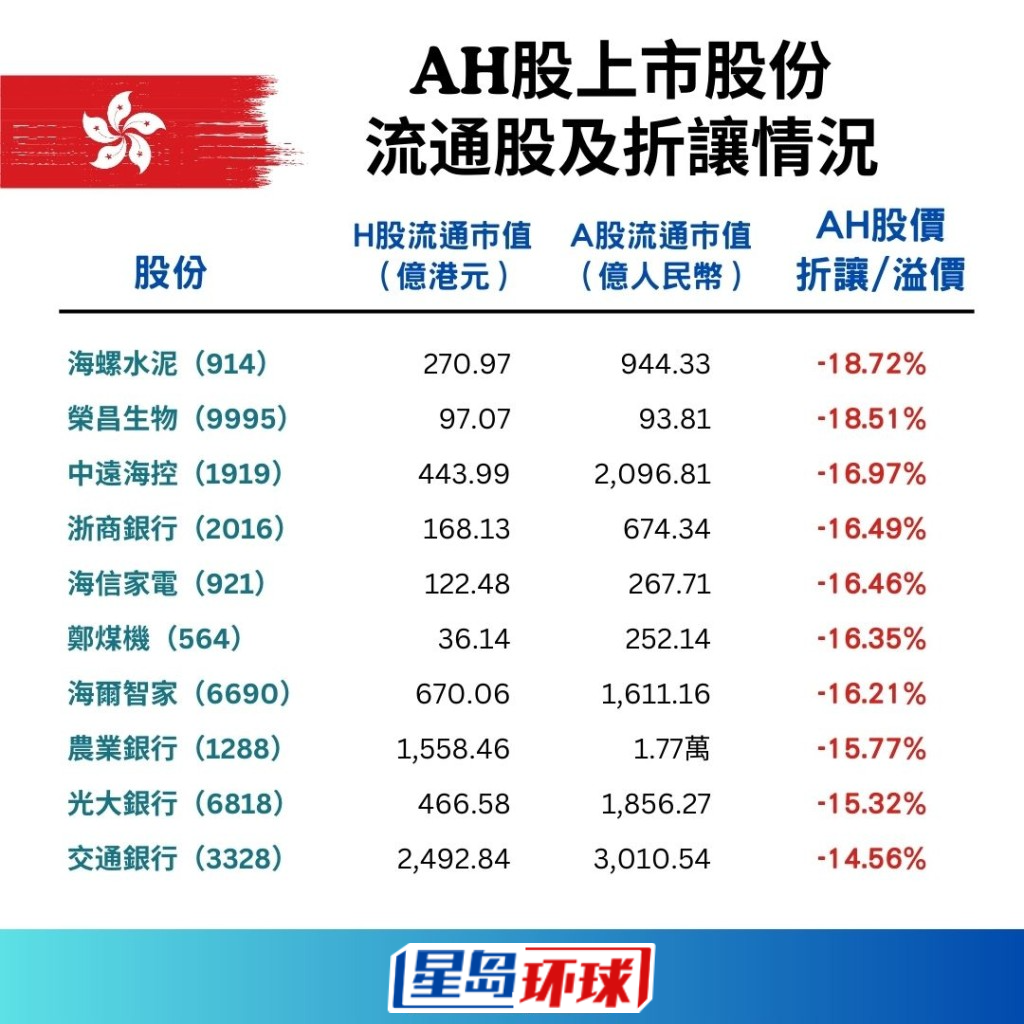 此外,統計目前153只AH股上市股份之中,有143只的H股流通市值較A股為小,屬市場主流,但只有11只股份折讓低于10%,反映AH股折讓收窄的路仍然漫長,而流通股份多寡的影響或對新股上市初期較大。
