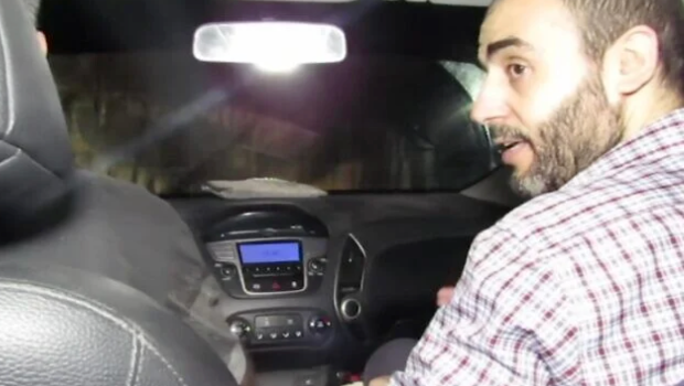 以色列國防軍于2023年12月17日公布的一段未注明日期的視頻截圖顯示,穆罕默德·辛瓦爾(右)乘坐一輛汽車穿過加沙地帶的地下隧道。圖源:《以色列時報》